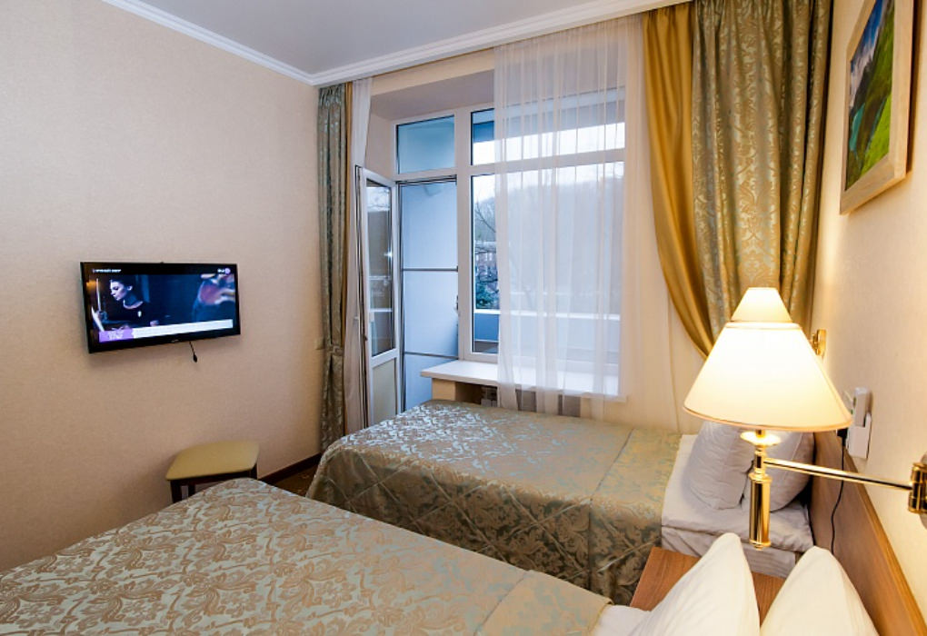Площадь номера - 15 кв.м. 1 комната. 2 осн. места. Номера данной категории расположены на 1, 2, 4 и 5 этажах здания. Вид на парковую аллею. Солнечная сторона.. В номере: телевизор; холодильник; лоджия; сплит-система; телефон; фен; набор посуды; сейф; Wi-Fi; туалетные принадлежности; 1-спальные кровати; чайник; санузел. 1 доп. место: