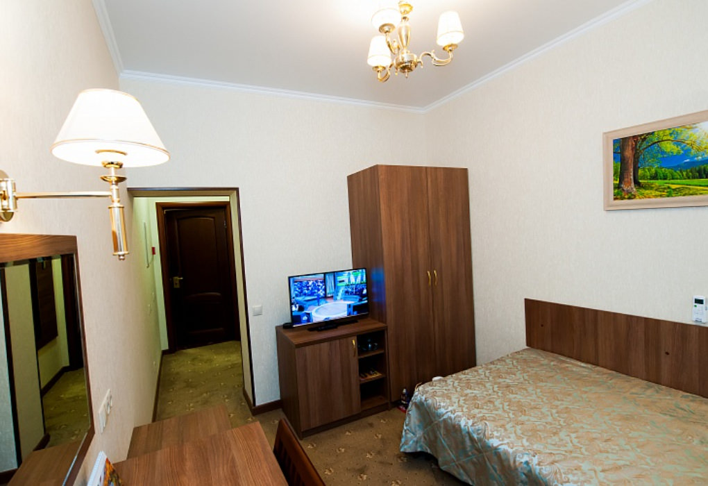 Площадь номера - 15 кв.м. 1 комната. 1 осн. место. Номера данной категории расположены на 3-м и 6-м этажах здания. Вид из окна на парковую аллею.. В номере: телевизор; холодильник; лоджия; сплит-система; телефон; набор посуды; сейф; 1,5-спальная кровать; чайник.
