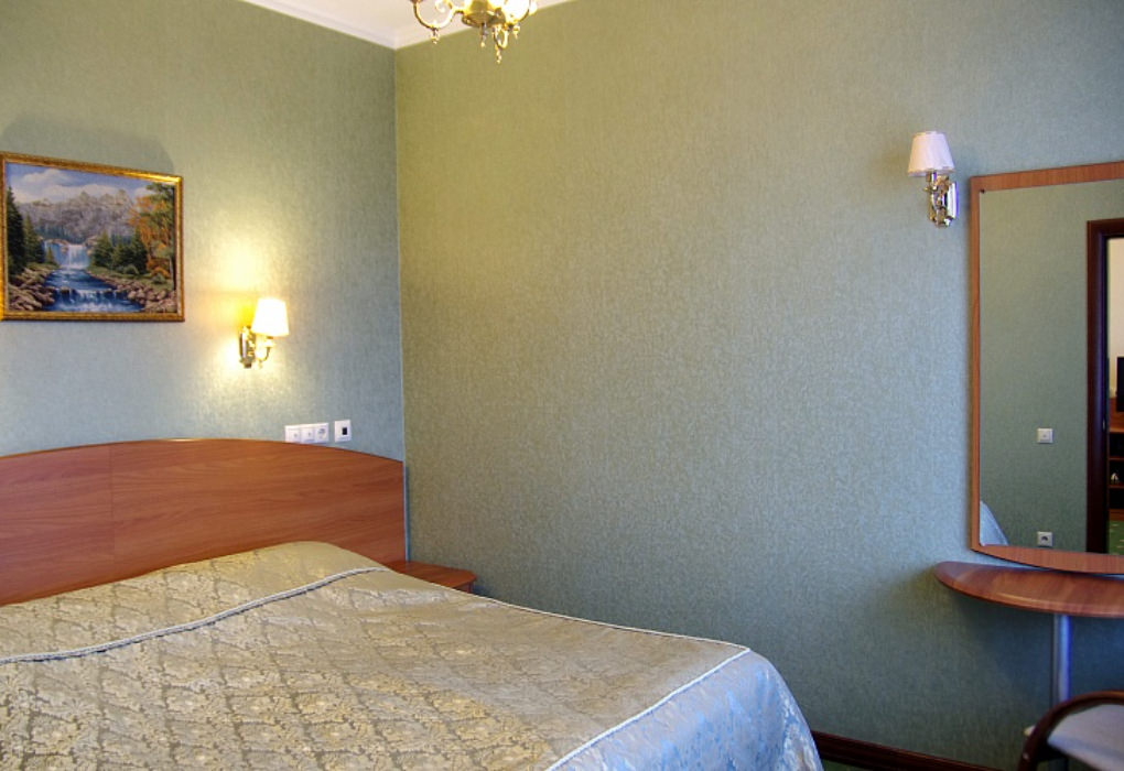 Площадь номера - 32 кв.м. 2 комнаты. 2 осн. места. Номера данной категории расположены на 7-м этаже здания. Вид из окна на внутренний двор санатория или парковую аллею. Бесплатно: неограниченное пользование тренажерным залом, одна игра в боулинг. В номере: телевизор; холодильник; лоджия; сплит-система; телефон; фен; набор посуды; сейф; тапочки; Wi-Fi; утюг; туалетные принадлежности; гладильная доска; 1-спальные/ 2-спальная кровать; диван; чайник; санузел; халат. 1 доп. место: